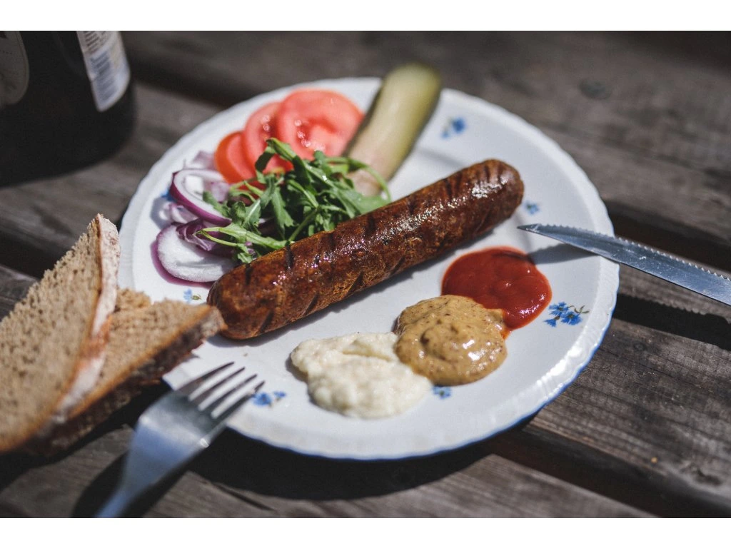 Rostlinné klobásy s příchutí papriky. Vhodně ke smažení, pečení, nebo ke konzumaci za studena.
